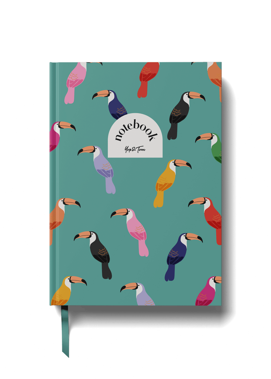 This A5 notebook features a delightful parade of toucans in vibrant hues, creating a cheerful and lively vibe that instantly brightens your space. Finished in a sturdy hardcover, it not only looks fantastic on any desk or shelf but also makes for a thoughtful gift for anyone who loves to jot down their thoughts.