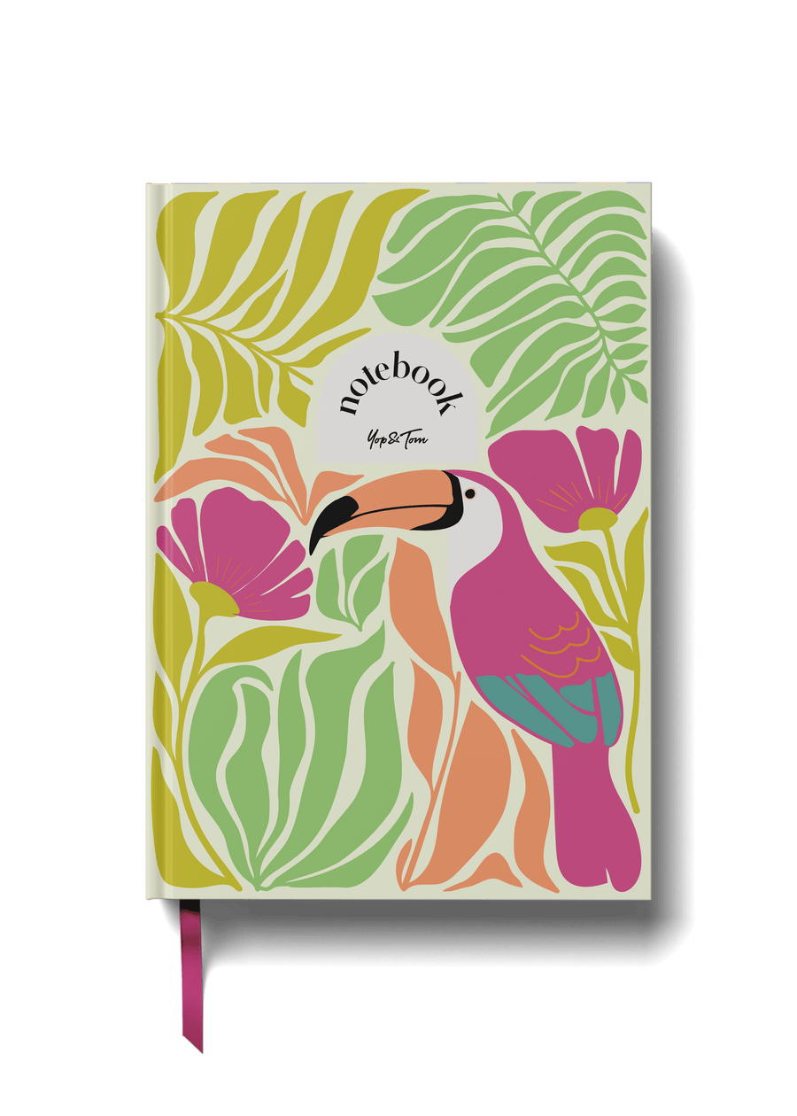 The cover of this lined notebook features a vibrant toucan motif against a fresh green backdrop, bringing a playful touch to your desk or shelf. Its bold typography and lively colours make it an inviting addition to any collection, perfect for gifting to those who appreciate unique design.